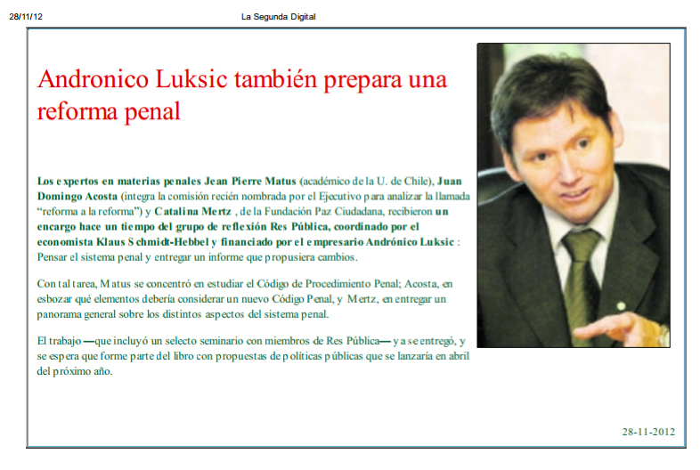 Un grupo de expertos en materias penales recibió hace un tiempo el siguiente encargo de Grupo Res Pública Chile: Pensar el sistema penal y entregar un informe que propusiera cambios.