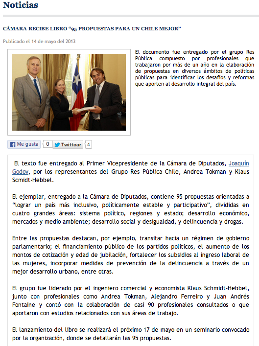 Cámara recibe libro “95 propuestas para un Chile mejor”