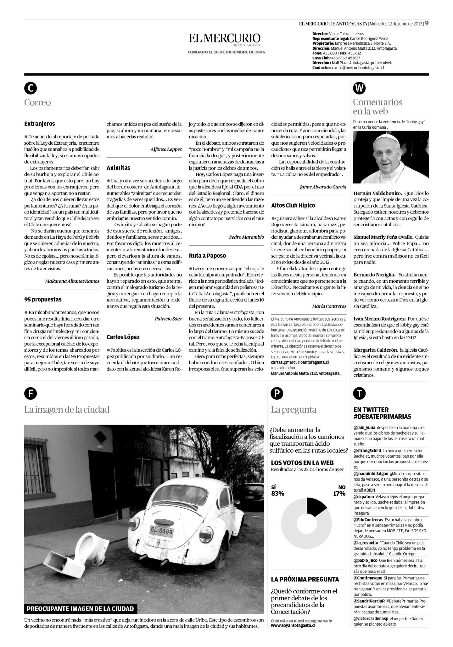 “En mis abundantes años, que no son pocos, me resulta difícil recordar otro seminario que haya horadado con tan fina cirugía mi intelecto y mi conciencia como el del viernes último pasado, por la excepcional calidad de los expositores y de los temas abarcados por éstos, resumidos en las 95 Propuestas para mejorar Chile, tarea ésta de suyo difícil, pero no imposible si todos marchamos unidos en pos del sueño de la paz, si ahora y no mañana, empezamos a hacerlas realidad”.