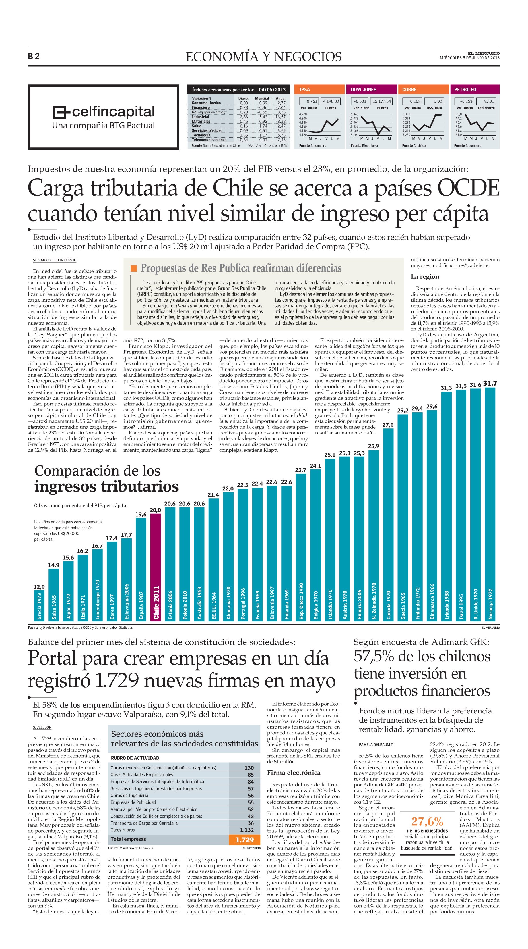 Carga tributaria de Chile se acerca a países OCDE cuando tenían nivel similar de ingreso per cápita El Mercurio 05 | 06 | 2013 El Instituto Libertad y Desarrollo (LyD) opina acerca de algunas de las propuestas de GRPC. Compartir en: