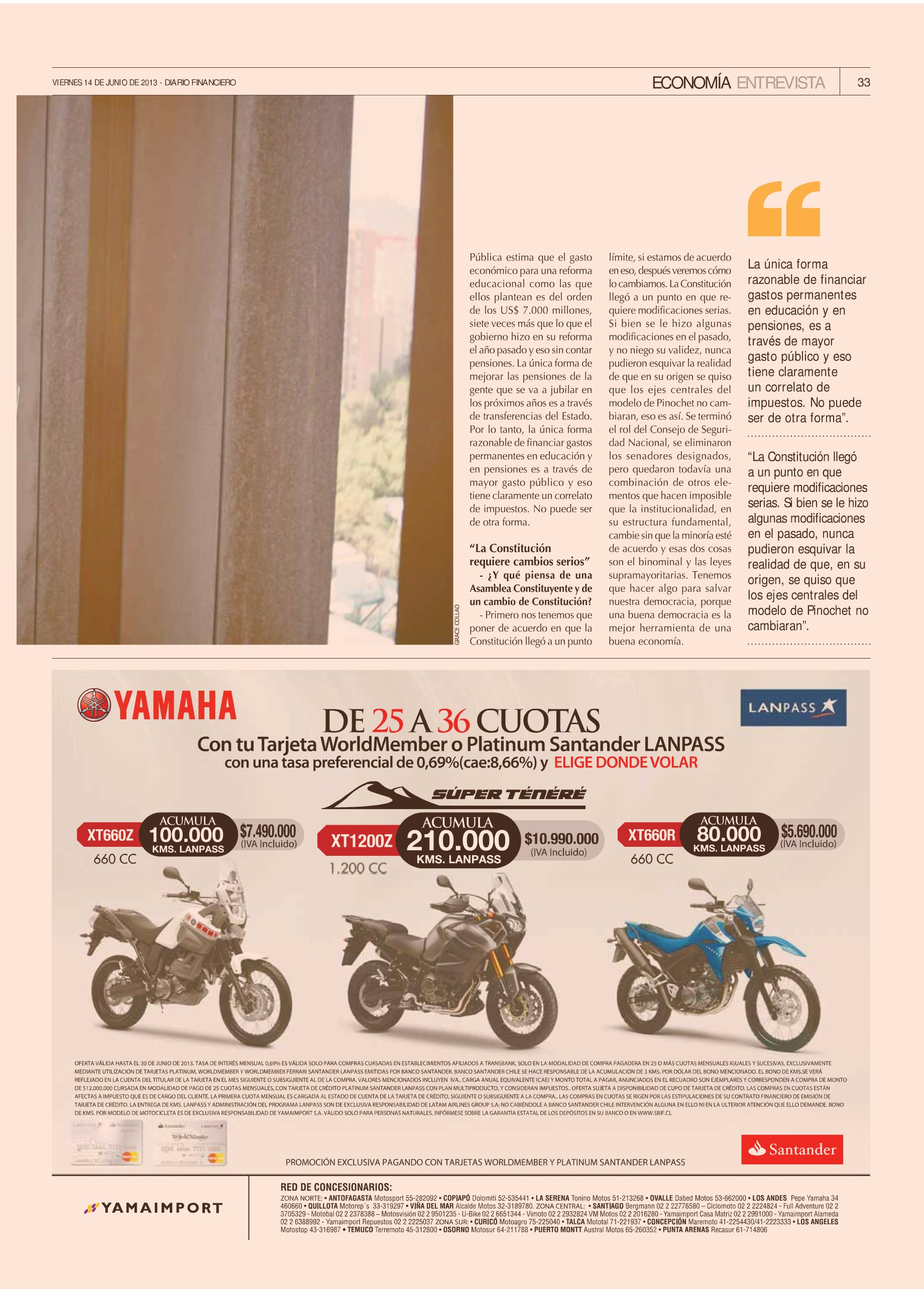 Se hace mención y ponen de ejemplo una de las 95 propuestas: El ex superintendente de Valores refutó los dichos del ministro de Hacienda: “Lo que se asocia a la desaceleración de la inversión tiene que ver fundamentalmente con el fin de la fase de inversión de ciertos proyectos mineros y el inicio de su fase de producción. No tiene nada que ver con el ciclo político”.