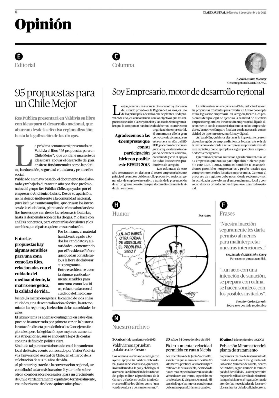 La próxima semana será presentado en Valdivia el libro “95 propuestas para un Chile Mejor”, que contiene una serie de ideas para apoyar el desarrollo del país, en áreas fundamentales como la política, la educación, seguridad ciudadana y protección social.