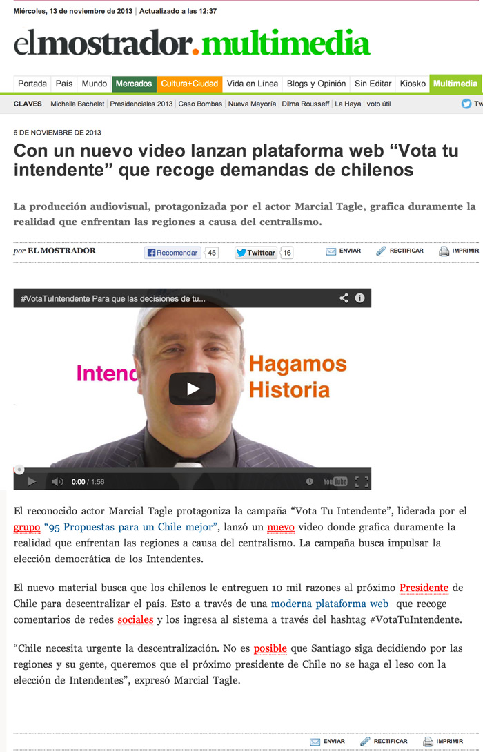 Con un nuevo video lanzan plataforma web “Vota tu intendente” que recoge demandas de chilenos